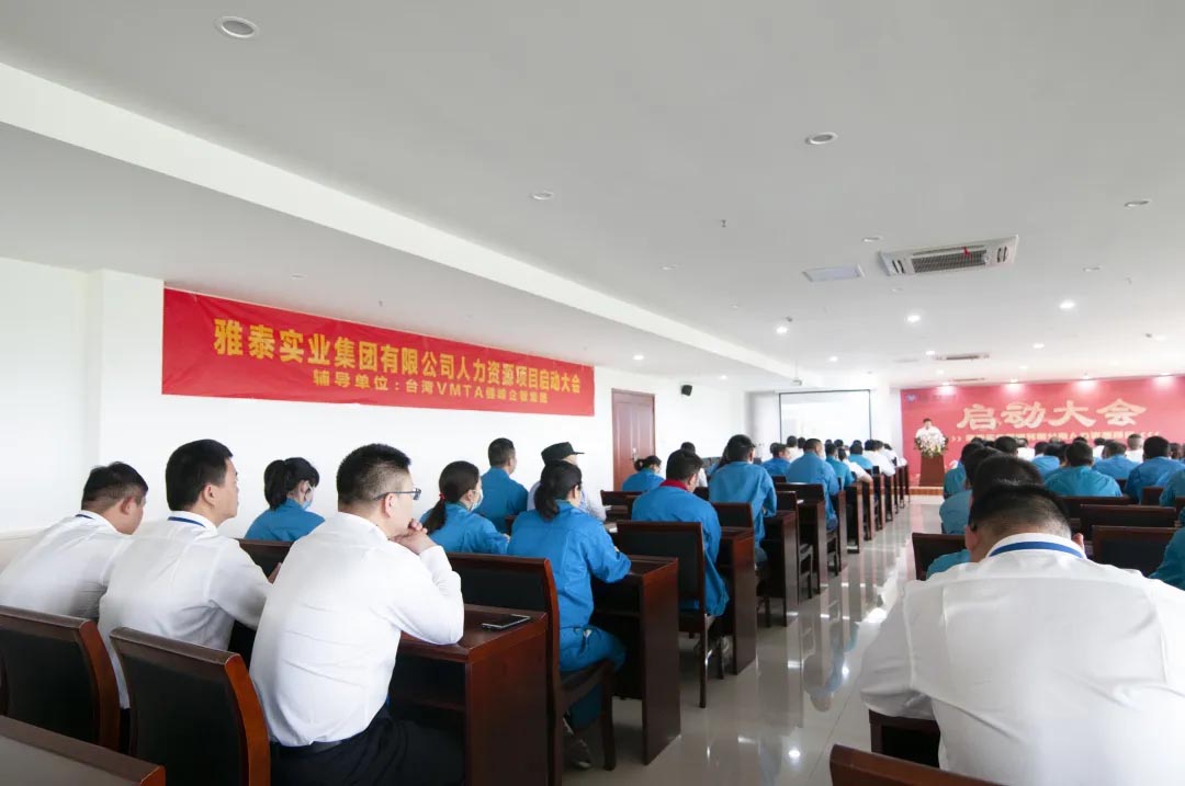 為提升企業(yè)整體管理水平,創(chuàng)造更為優(yōu)質(zhì)的人才環(huán)境,5月21日上午,集團(tuán)特邀臺(tái)灣VMTA健峰企管集團(tuán)導(dǎo)入人力資源輔導(dǎo)項(xiàng)目,在江蘇雅泰召開(kāi)雅泰實(shí)業(yè)集團(tuán)人力資源輔導(dǎo)項(xiàng)目啟動(dòng)大會(huì)。