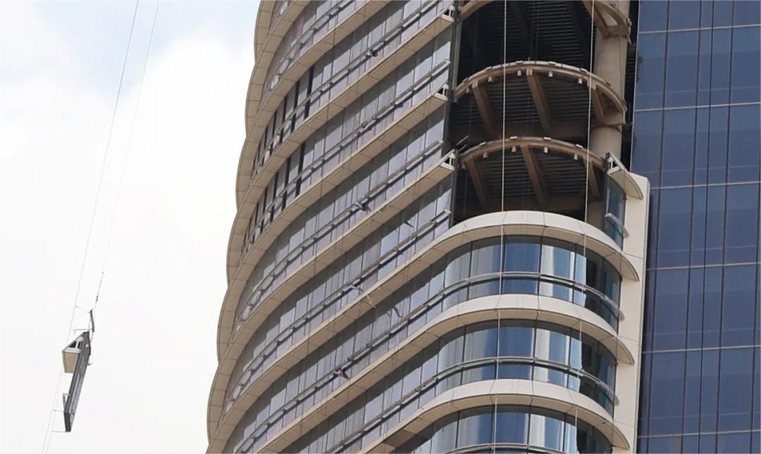 當(dāng)?shù)貧夂蜓谉岣稍铮罡邭鉁乜蛇_50攝氏度,大樓幕墻需具備很強的防曬作用和耐高溫性能。塔樓呈雙半圓筒狀體外觀構(gòu)造,配以橫向遮陽和雙曲拉鏈梁的裝飾鋁單板,猶如古埃及女神瓦吉特的外衣。這些設(shè)計元素不僅增強實用功能,如減少直射日光和控制室內(nèi)溫度,且增加了建筑的視覺吸引力,使其成為一座現(xiàn)代與傳統(tǒng)相結(jié)合的建筑。